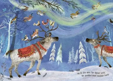 In this wonderfully festive picture book, Yuval Zommer imagines the northern lights' fleeting journey from space to Earth and how they weave a special magic for the animals and people living in the frozen lands below.