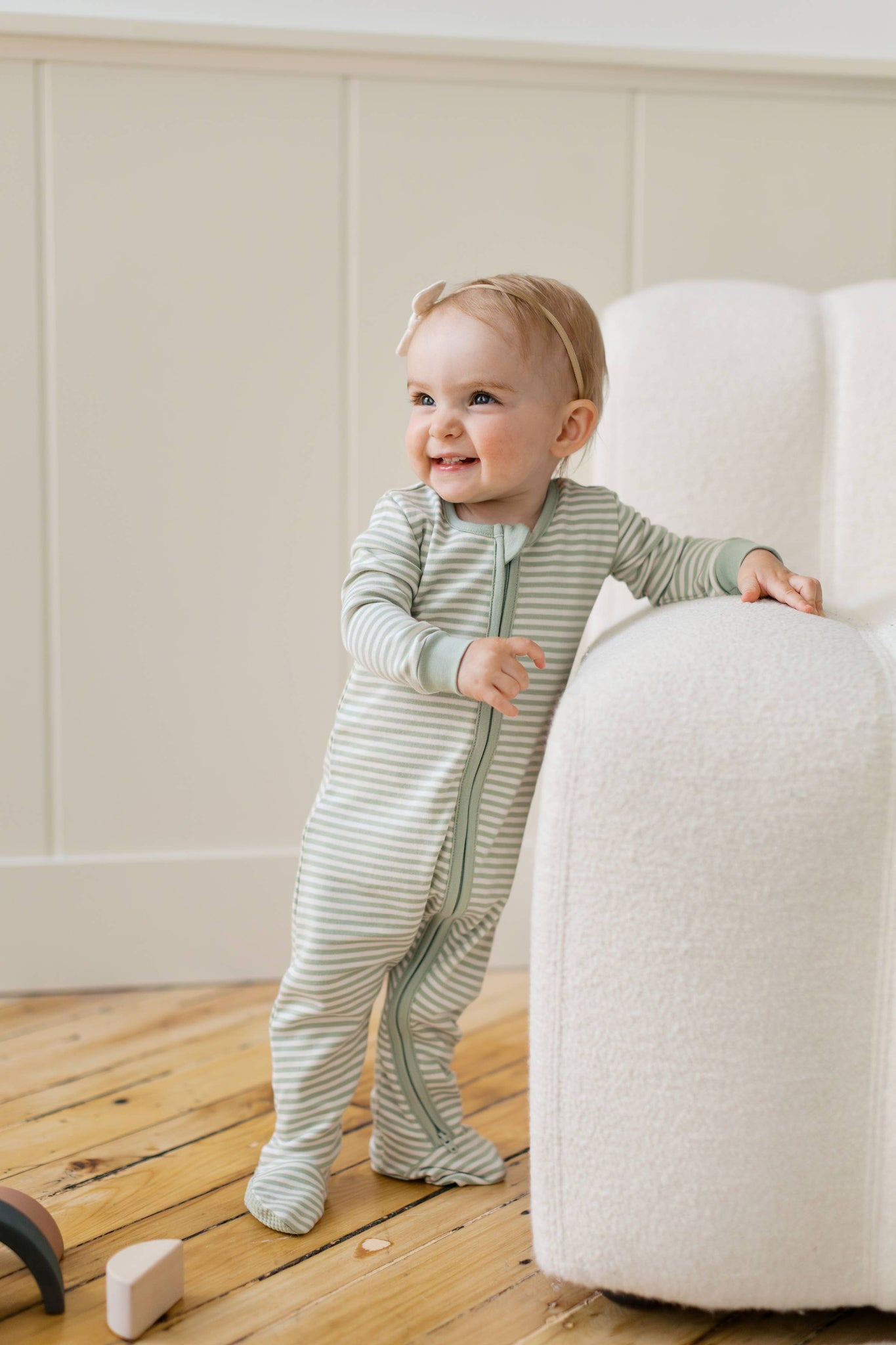 - Footed grips on sizes 6-12M