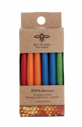 Pure Beeswax Birthday Taper Candles, Assorted Colors - Big Dipper