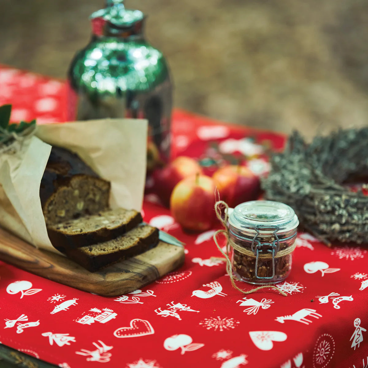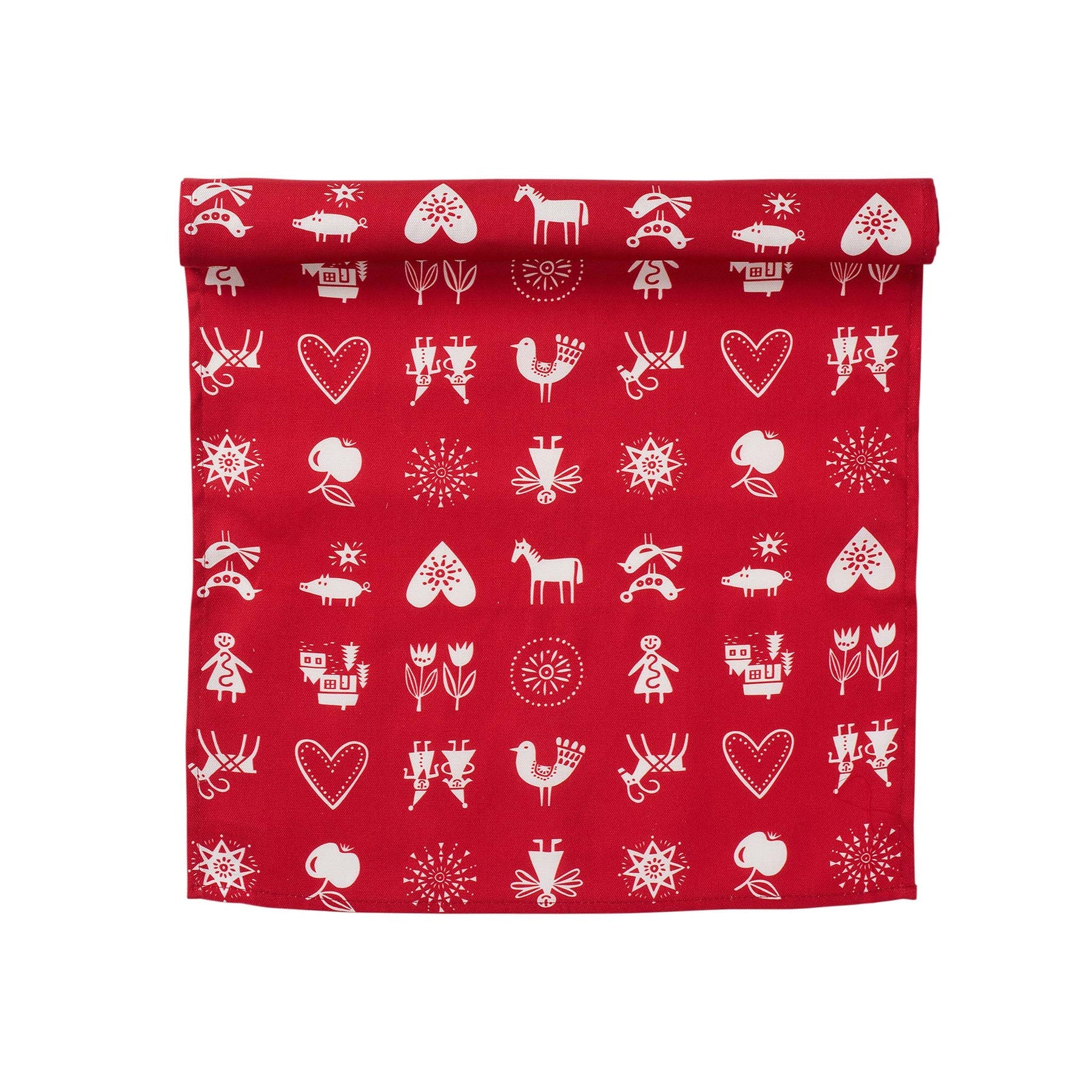 Cheerful red Lotta's Christmas Table Runner designed by by Swedish design team Bengt and Lotta.