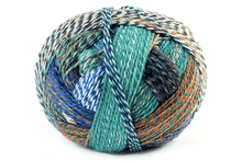Zauberball has been kicked up a notch, as two strands of the main ply have been dyed individually and then twisted together for a crazy combination! The end result is a self-striping multi-colored pattern, with a bold variegated design!